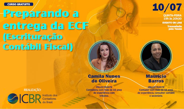 No próximo dia 10 de julho de 2025, das 19h às 21h, será realizado o curso “Se preparando para entregar a ECF – Escrituração Contábil Fiscal”, com transmissão pela plataforma Microsoft Teams. O objetivo é orientar profissionais sobre os principais cuidados e obrigações para a entrega correta da ECF, minimizando riscos contábeis e fiscais, evitando penalidades. O curso é promovido pelo Comitês de Assuntos Tributários do Instituto dos Contadores do Brasil (ICBR)