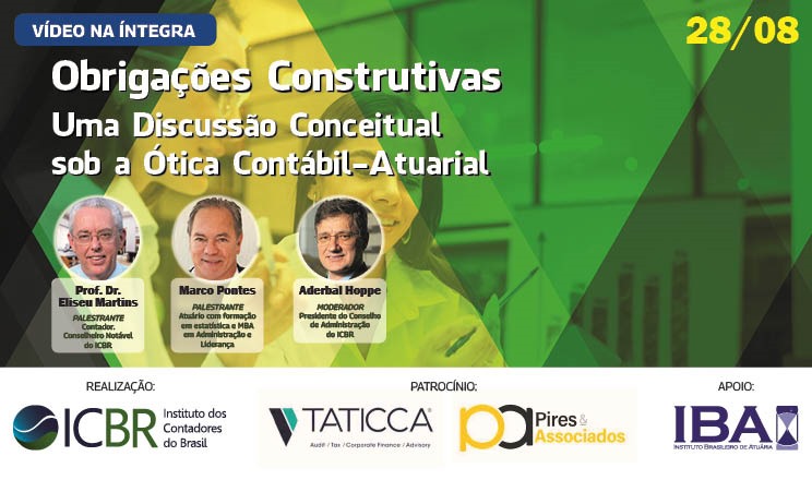 Já está disponível no Canal do YouToube do ICBR (@icbrbrasil) a íntegra do curso Obrigações Construtivas – Uma Discussão Conceitual Sob a Ótica Contábil-Atuarial. Aula promovida pelo ICBR - Instituto dos Contadores do Brasil, com apoio do @Instituto Brasileiro de Atuária - IBA, ministrada pelo renomado Prof. Dr. Eliseu Martins e pelo atuário Marco Pontes, com moderação de Aderbal Hoppe, presidente do Conselho de Administração do ICBR - Instituto dos Contadores do Brasil, que discutiu as obrigações construtivas sob as perspectivas contábil e atuarial, com ênfase nas práticas informais que geram responsabilidades não explicitamente estabelecidas nos planos formais de benefícios a empregados.
