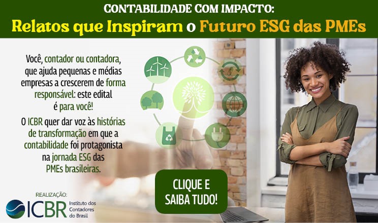Profissionais da contabilidade poderão inscrever relatos de experiências sustentáveis que transformam empresas e comunidades. As inscrições ficam abertas de 8 a 20 de outubro de 2025. O concurso é promovido pelo Comitê de Assuntos de Sustentabilidade do ICBR. Os vencedores serão conhecidos no dia 5 de novembro de 2025, no evento Contabilidade em PMEs: Conectando ESG na Cadeira de Valor, que será realizado na sede do CRC-SP.